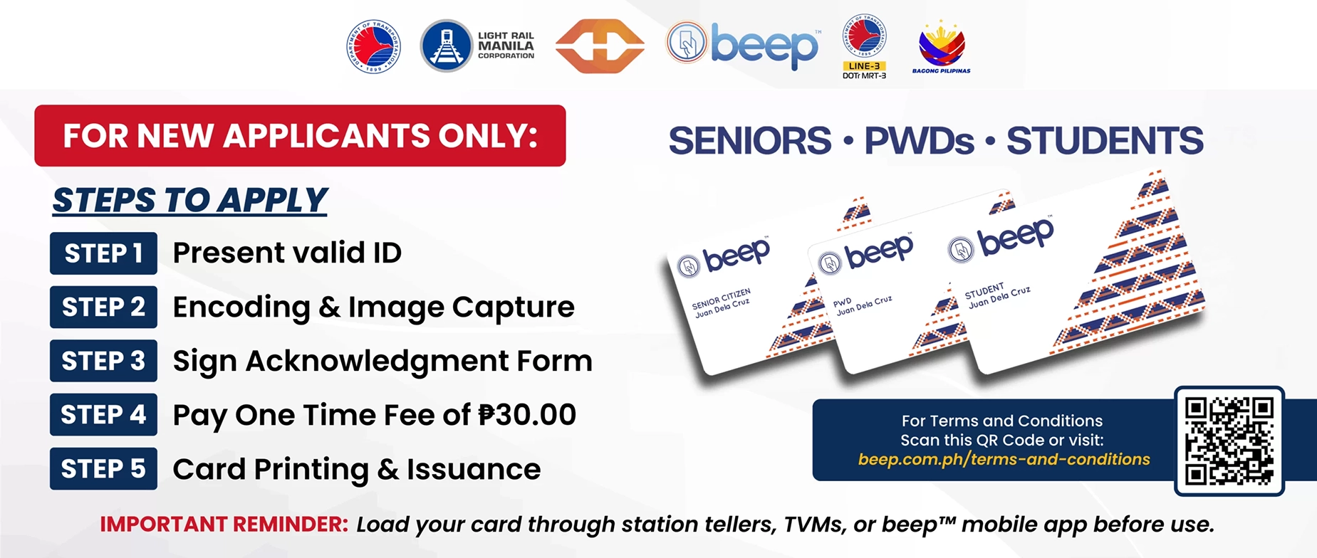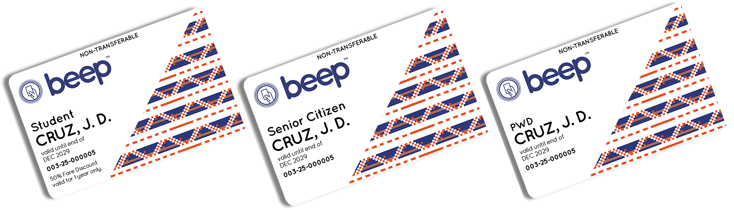 Ang Concessionary beep™ Card ay pinagkakaloob sa mga kwalipikado o eligible na aplikante tulad ng Senior Citizens, PWDs, at Students upang makakuha ng karampatang discount ayon sa batas at sa alituntunin ng mga nagkakaloob ng discount.