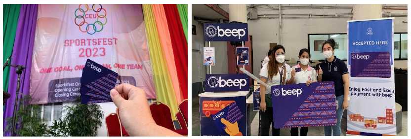 While Escolarians are busy with the different games, dance competitions and the much-awaited Mr. and Ms. Sportsfest 2023 pageant during the opening date, they enjoyed live demonstrations of beep™ card loading, reloading, load fetching, NFC (Near Field Communication) technology, and Automated Fare Collection (AFCS) at the booth set-up in the CEU North Quadrangle.