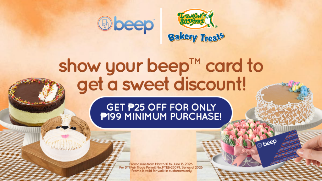 Ka-beep™-ers, we’ve got a sweet treat for you! We’ve partnered with Lemon Square Bakery Treats for a special promo: Enjoy ₱25 off by presenting your beep™ card when you order your favorite Lemon Square Bakery Treats products, for a minimum purchase of ₱199 only. Head to any branch of Lemon Square Bakery Treats and enjoy […]