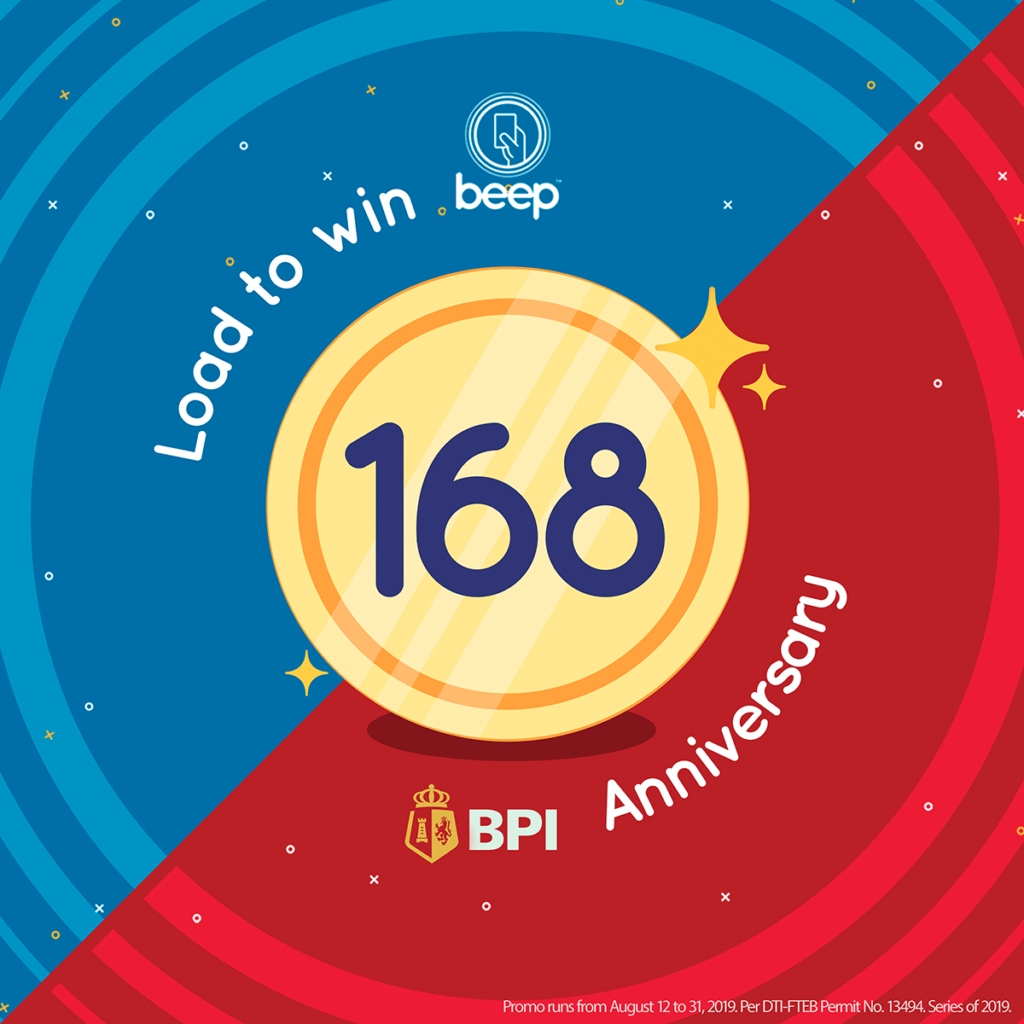 Please click to see Mechanics Ka-ching, ka-ching! Join BPI’s 168th anniversary promo para manalo ng PhP 168 free beep™ load. Just use the BPI mobile app or website to join. Promo runs from August 12 to 31, 2019. Per DTI-FTEB Permit No. 13494. Series of 2019.