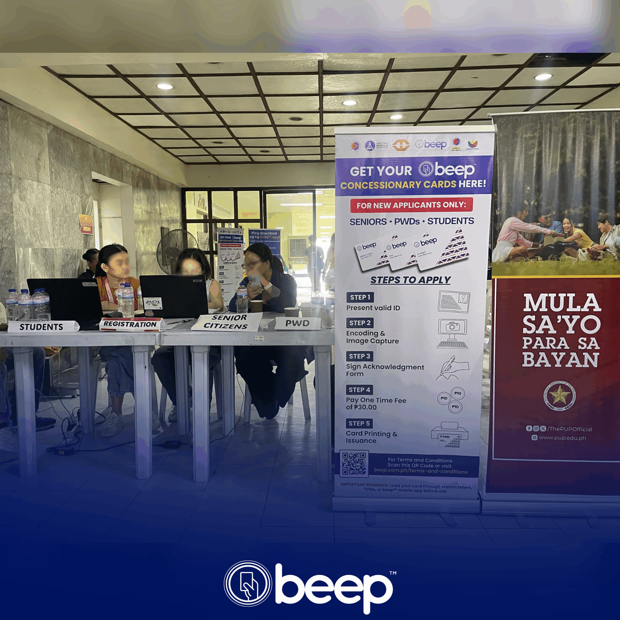 October 15, 2025 – The Polytechnic University of the Philippines (PUP) community hosted the “Concessionary beep™ Card Caravan” at its Mabini campus today, which facilitated the on-the-spot card issuance to eligible students, senior citizens and persons with disabilities (PWDs) granting fifty percent (50%) discount on train fares.