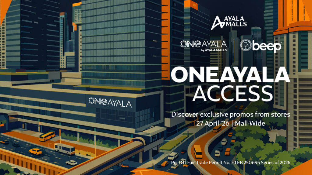 - Customers must shop and/or dine at a selected One Ayala store and present their One Ayala Access card upon payment to avail of exclusive perks on participating merchants.